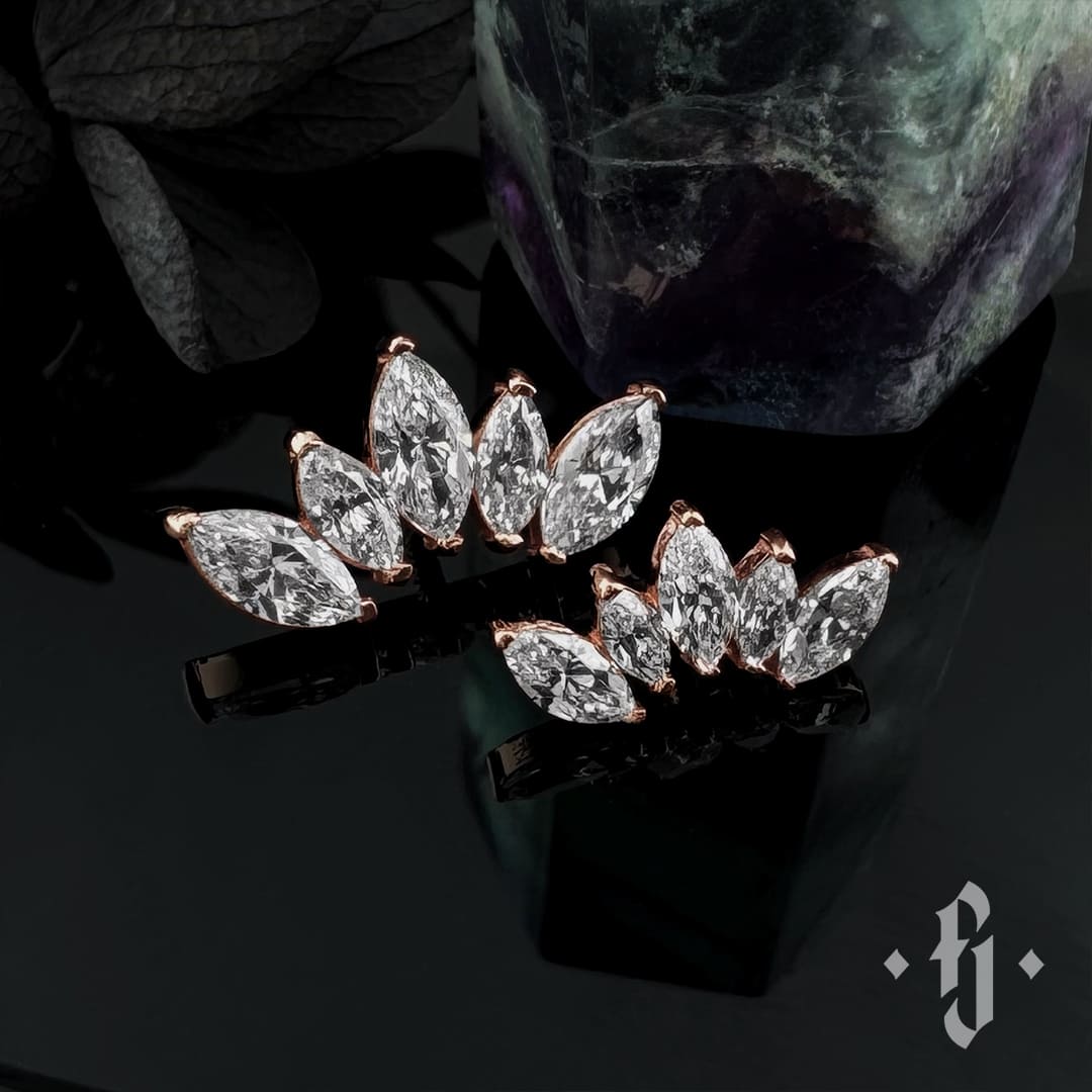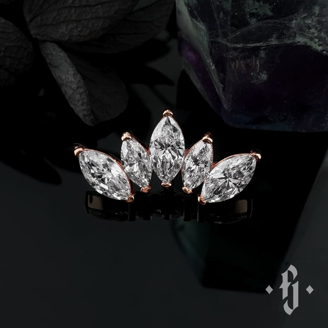 Кластер "Crown Marquise" - Розовое золото - White CZ