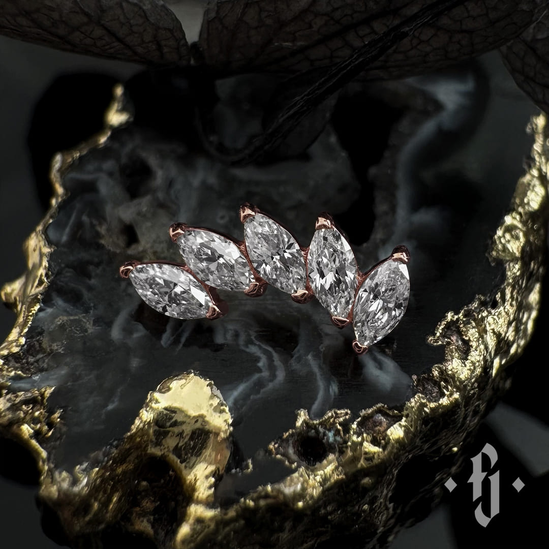 Кластер "Five Marquise" - Розовое золото - White CZ