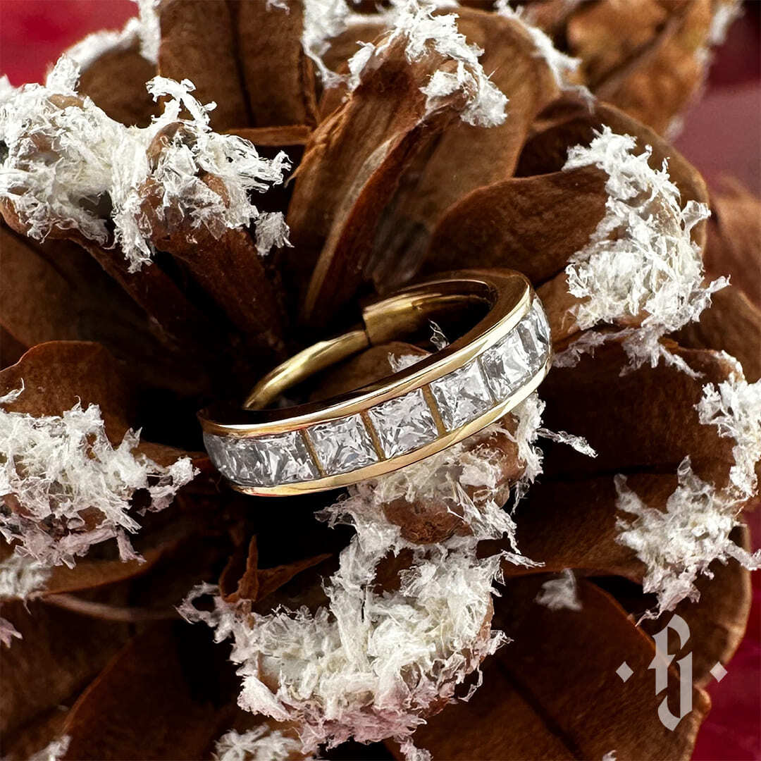 Квадратная огранка обеспечивает фианитам четкие линии и углы, создавая современный и геометрически правильный вид.
