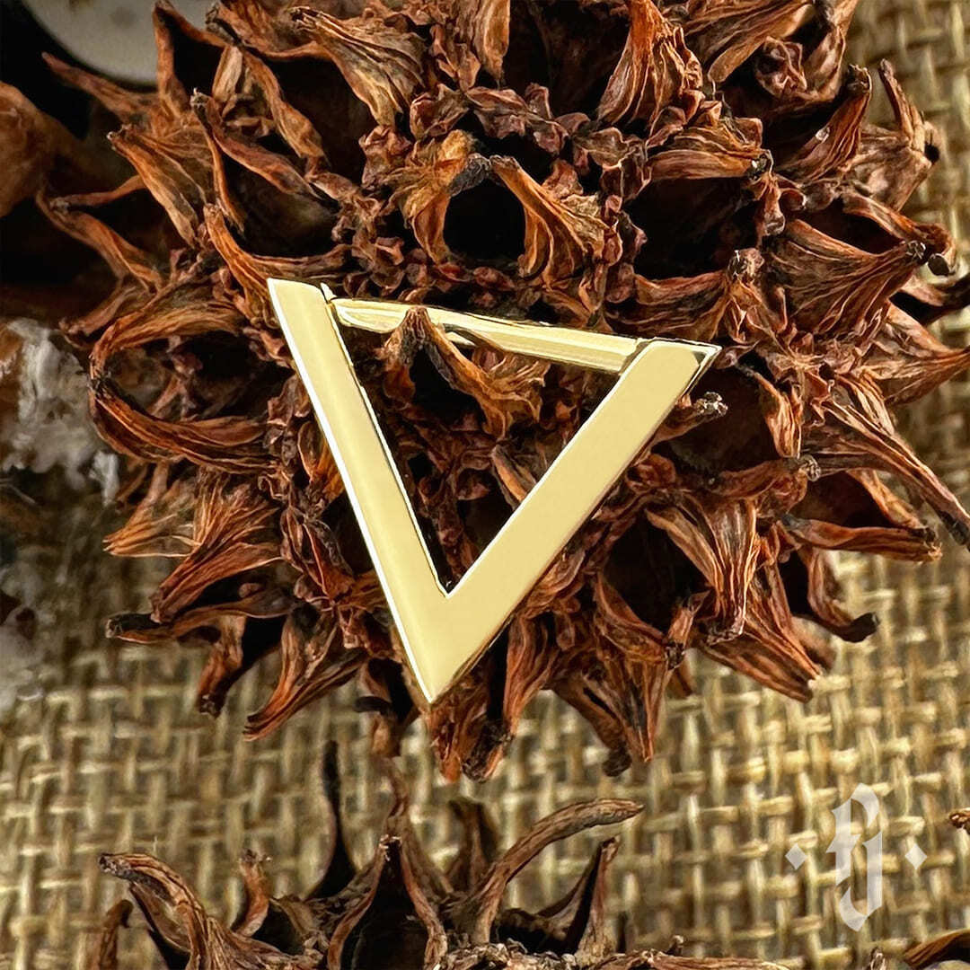 Одна из сторон треугольника является закрывающимся механизмом украшения, функционирующим как клик-замок, позволяющий легко снимать и устанавливать украшение.