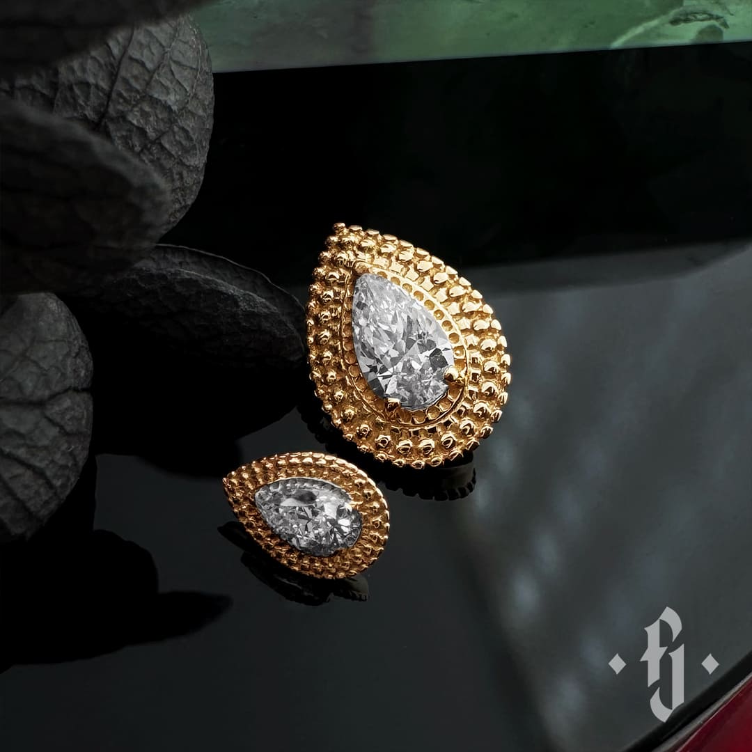 Накрутка "Drop" - Желтое золото - White CZ