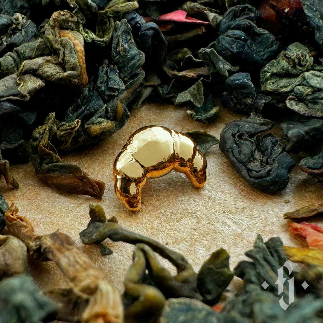 Миниатюрный объемный круассан, аккуратно свернутый в классическую форму.