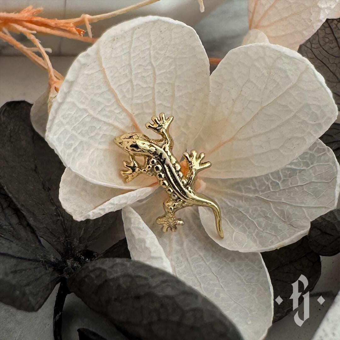 Форма изящной ящерицы с естественными изгибами и контурами тела. Ящерица начинается с небольшой вытянутой головы с аккуратными, выразительными глазками и тонкими, едва заметными линиями, имитирующими чешуйки. От головы плавно отходит шея, переходящая в слегка изогнутое туловище.