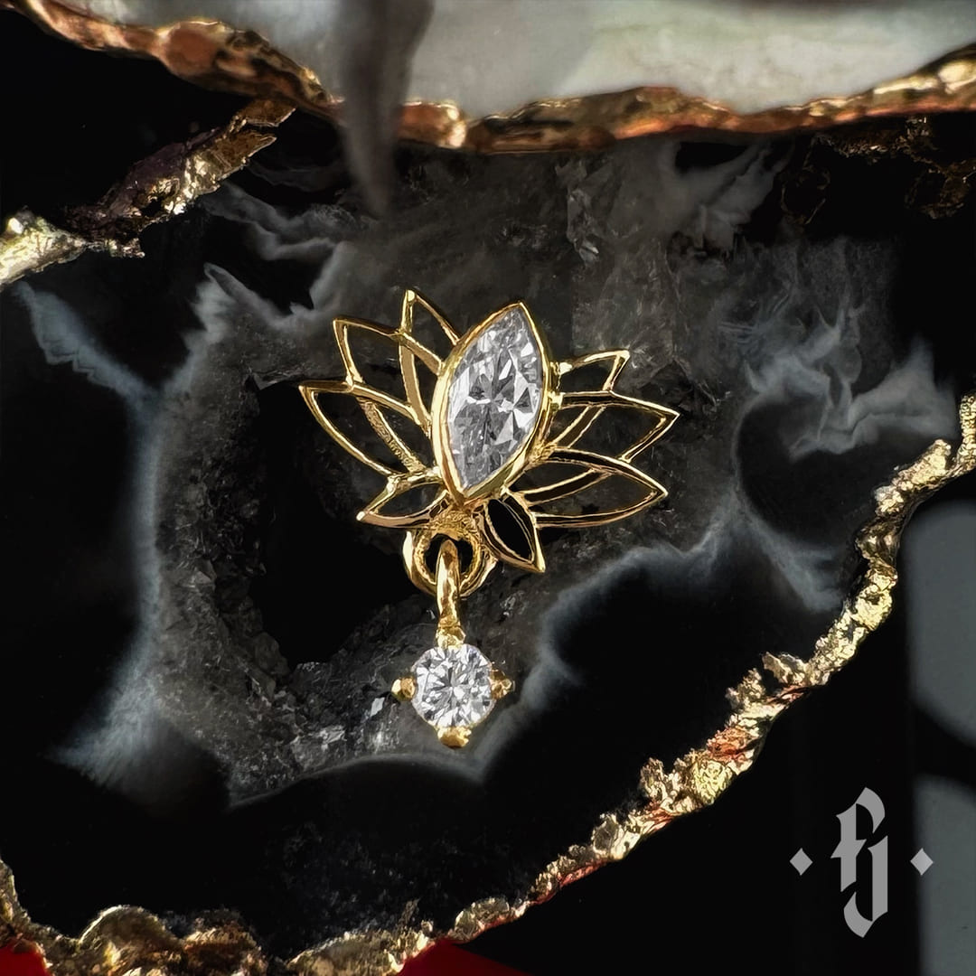 Накрутка "Spring Lotus" - Желтое золото - White CZ
