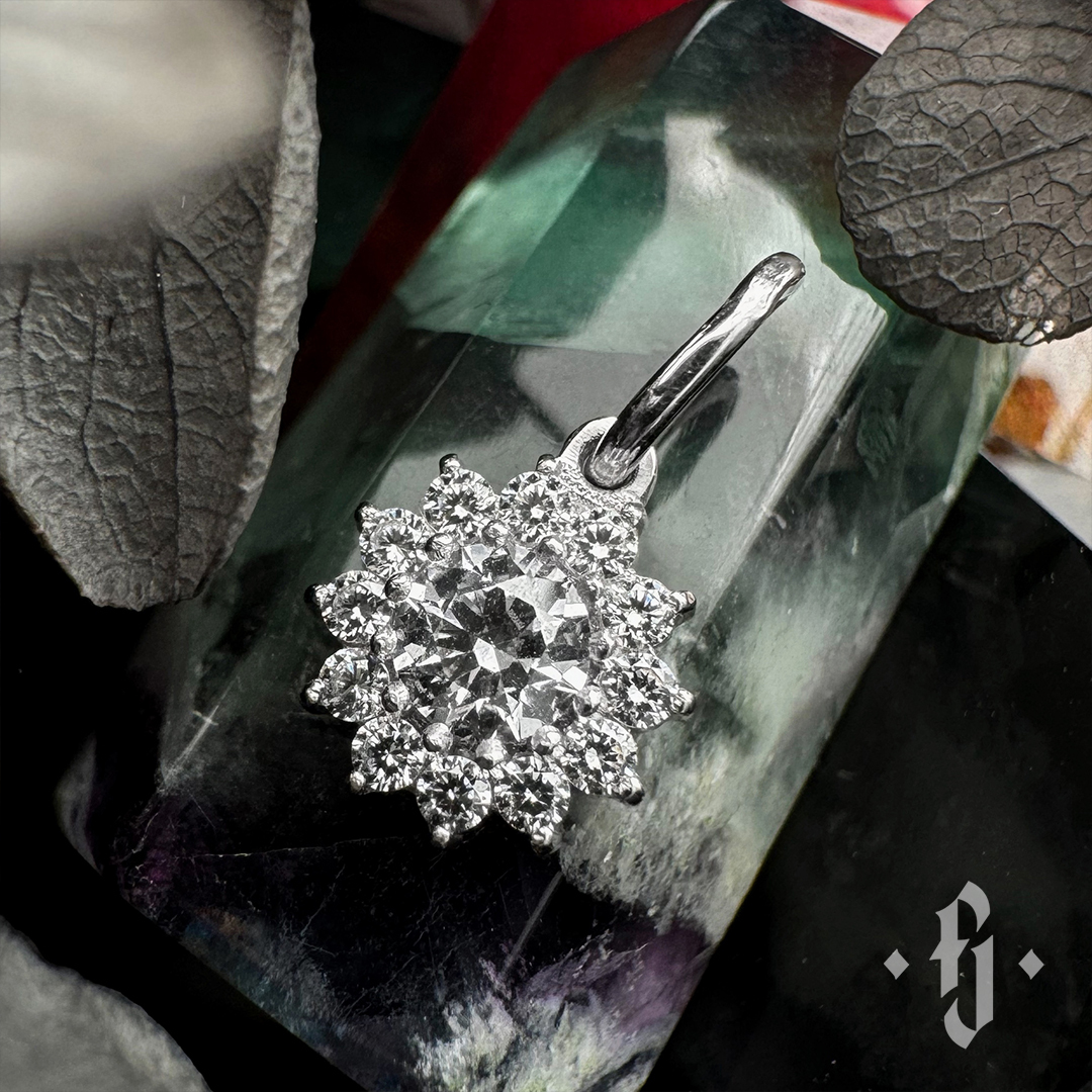 Центральный камень: крупный круглый фианит диаметром 4мм расположен в центре подвески, на самой высокой точке выпуклости.